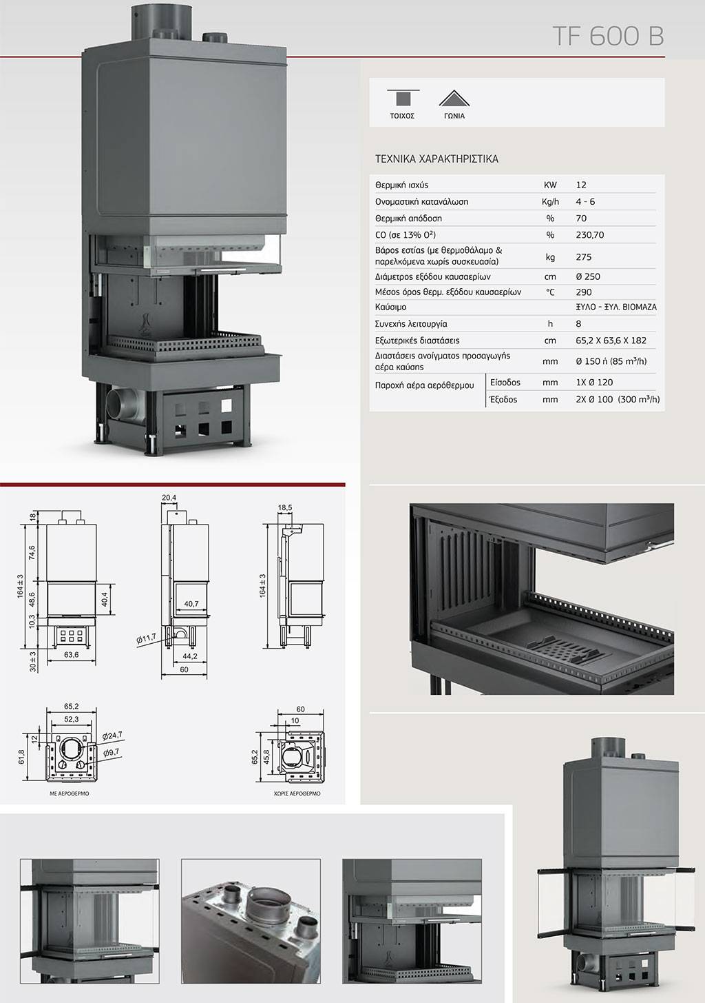 Αερόθερμη Ενεργειακή εστία 3 Όψεων Caminodesign TF 600 B