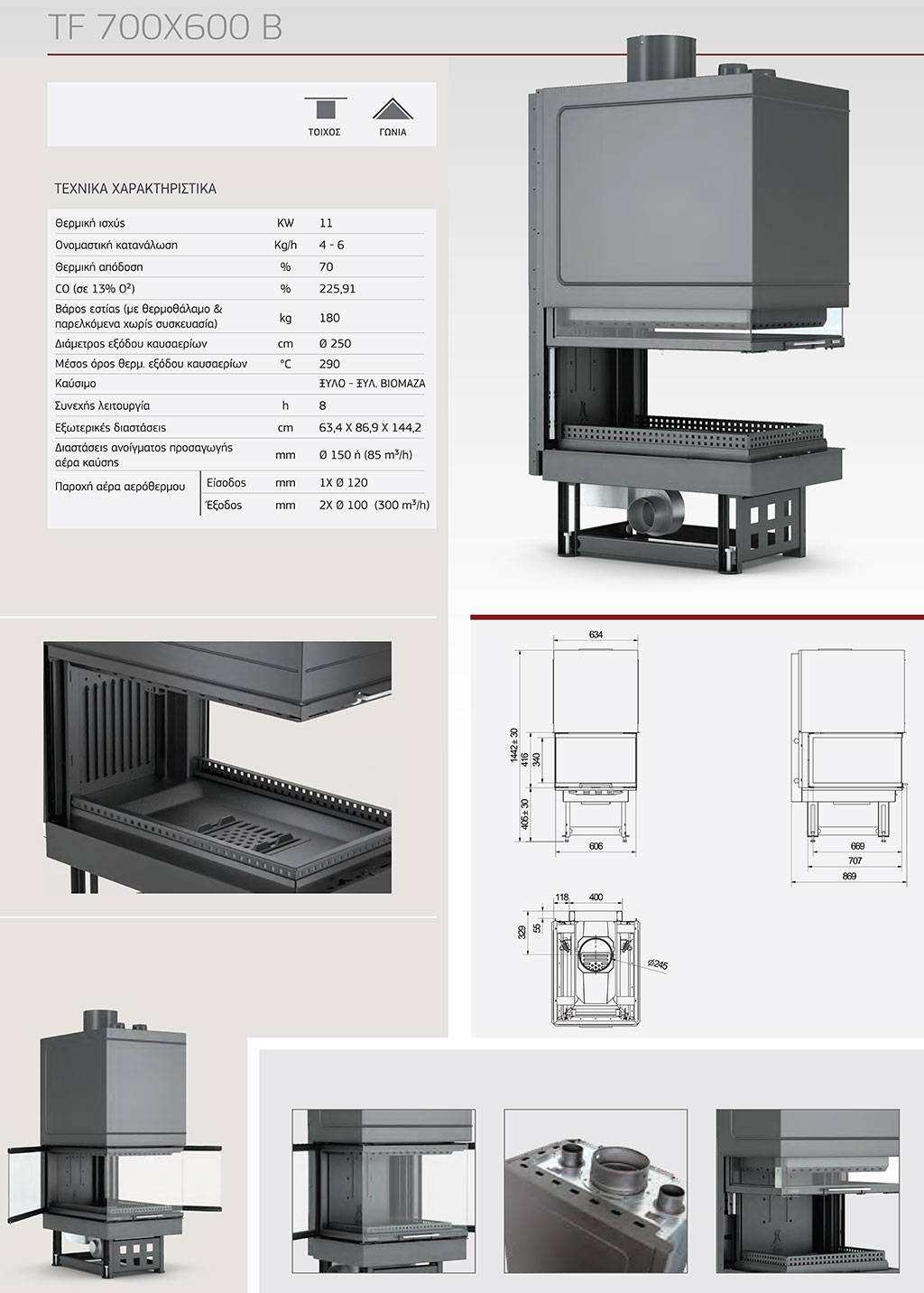 Αερόθερμη Ενεργειακή εστία 3 Όψεων Caminodesign TF 700X600 B
