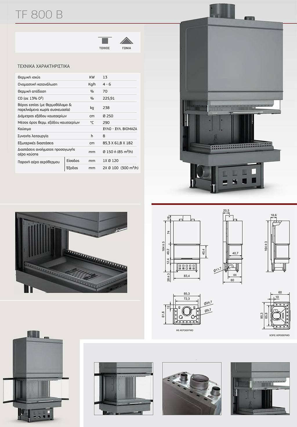 Αερόθερμη Ενεργειακή εστία 3 Όψεων Caminodesign TF 800 B