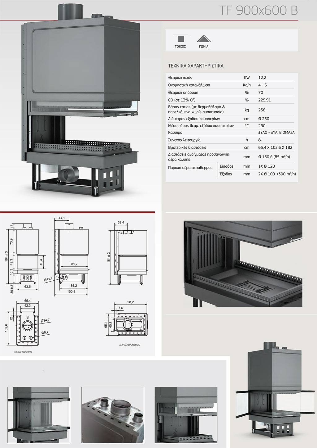 Αερόθερμη Ενεργειακή εστία 3 Όψεων Caminodesign TF 900x600 B