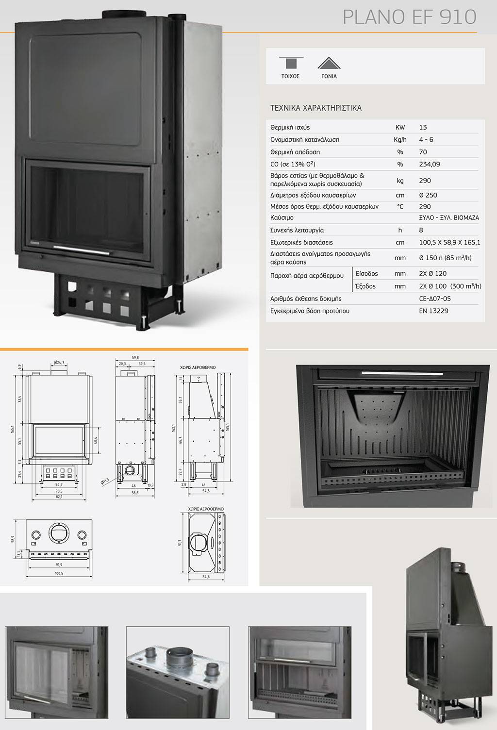 ΑΕΡΟΘΕΡΜΗ ΕΝΕΡΓΕΙΑΚΗ ΕΣΤΙΑ CAMINODESIGN PLANO EF 910