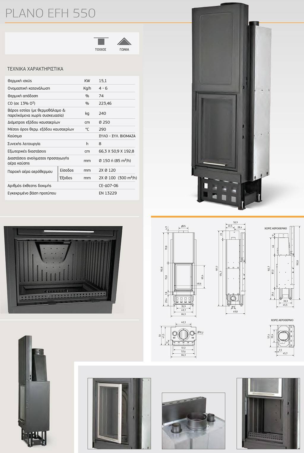 ΑΕΡΟΘΕΡΜΗ ΕΝΕΡΓΕΙΑΚΗ ΕΣΤΙΑ CAMINODESIGN PLANO EFH 550