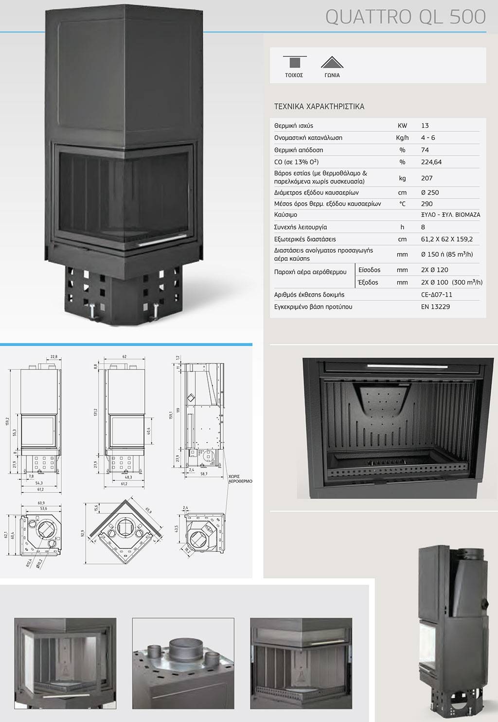 ΑΕΡΟΘΕΡΜΗ ΕΝΕΡΓΕΙΑΚΗ ΕΣΤΙΑ CAMINODESIGN QUATTRO QL 500
