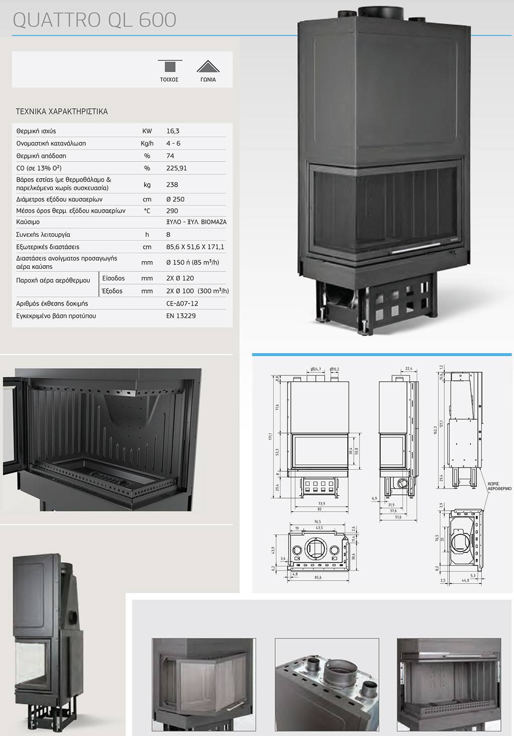 ΑΕΡΟΘΕΡΜΗ ΕΝΕΡΓΕΙΑΚΗ ΕΣΤΙΑ CAMINODESIGN QUATTRO QL 600