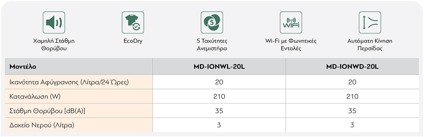 | Ικανότητα Αφύγρανσης | Έως 20 lt/ημέρα |
