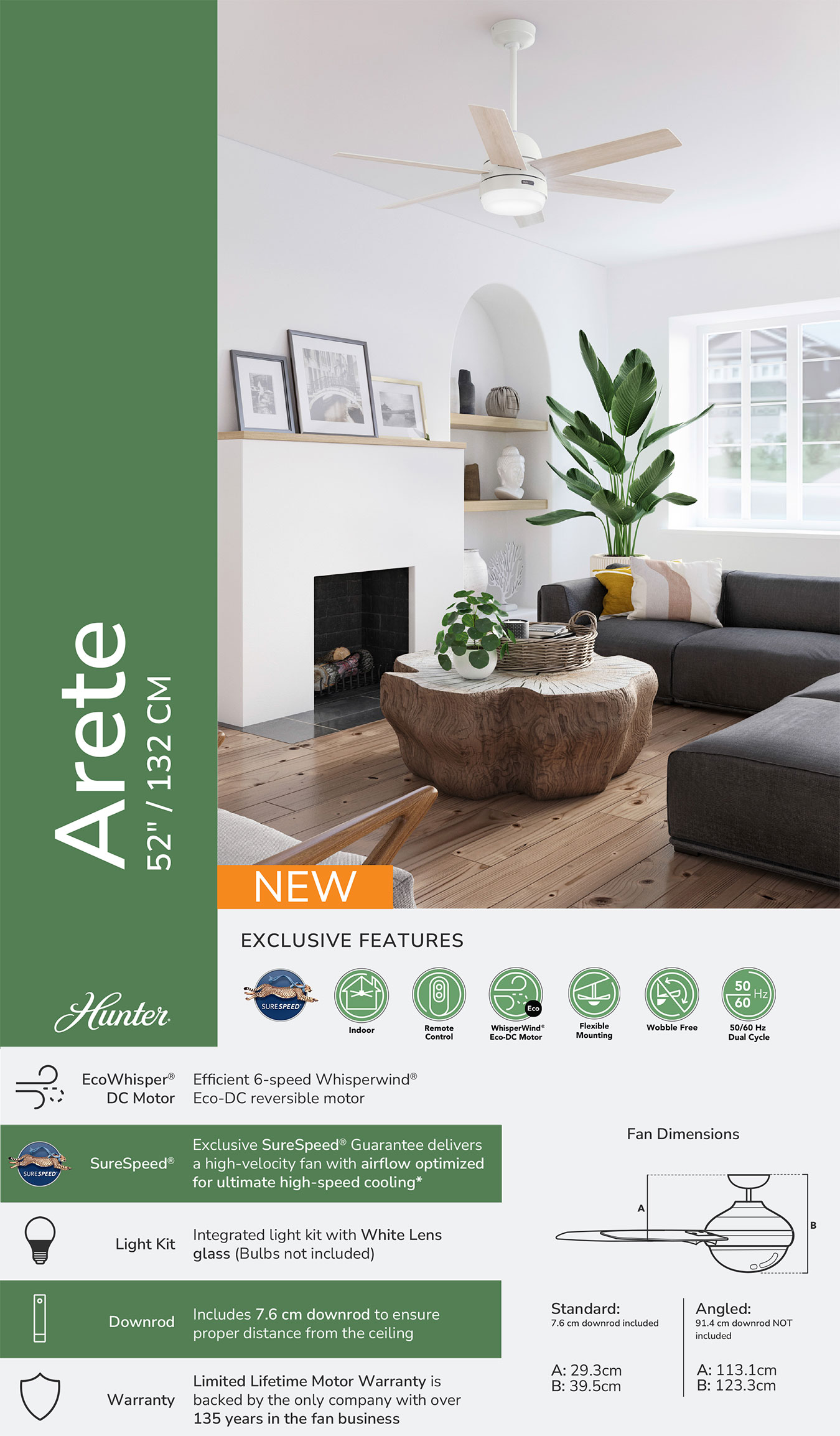 - Διαθέτει αθόρυβο κινητήρα WhisperWind Eco-DC.