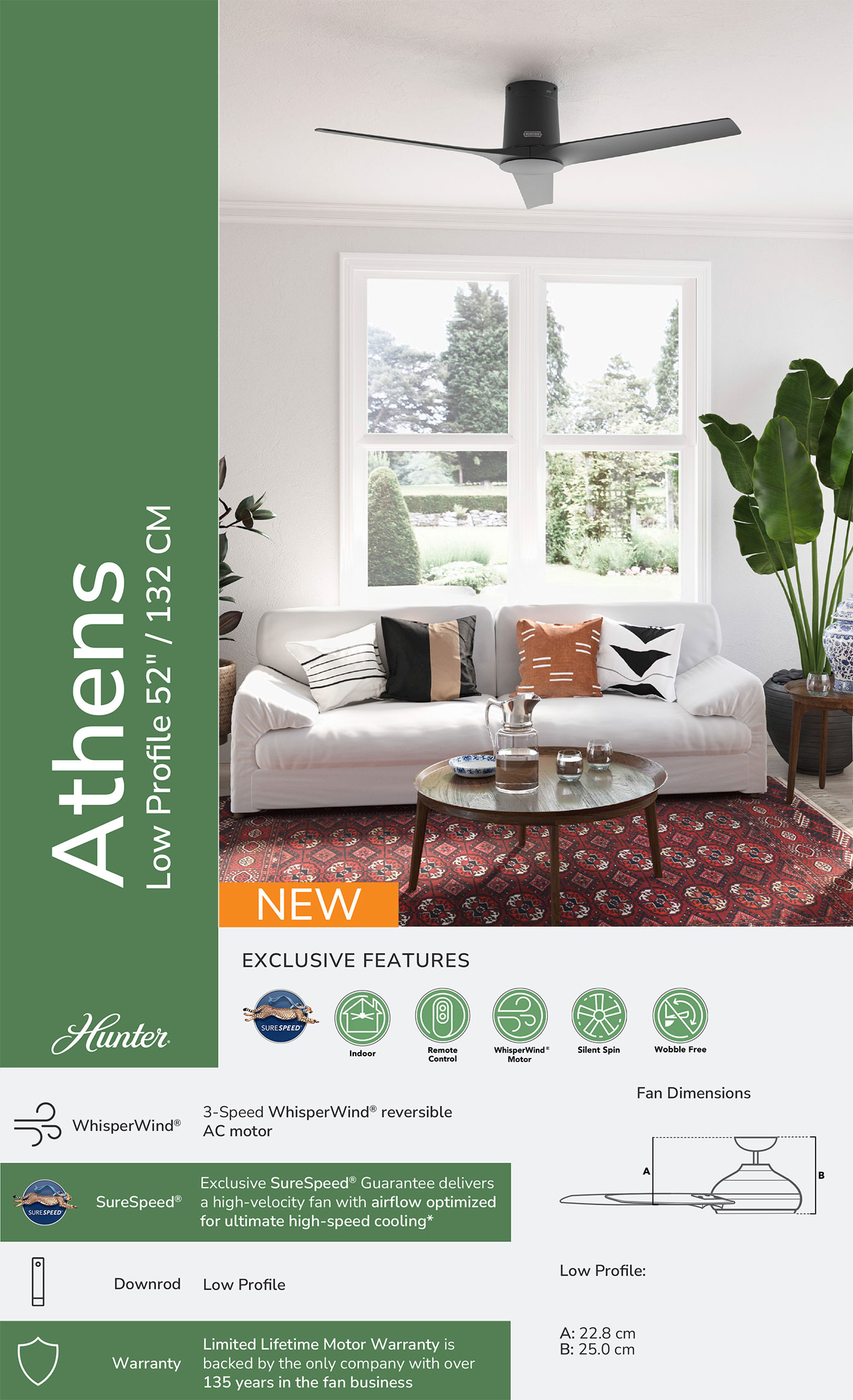 Ανεμιστήρας οροφής HUNTER Athens Low Profile - Fresh White - White 132cm 52694