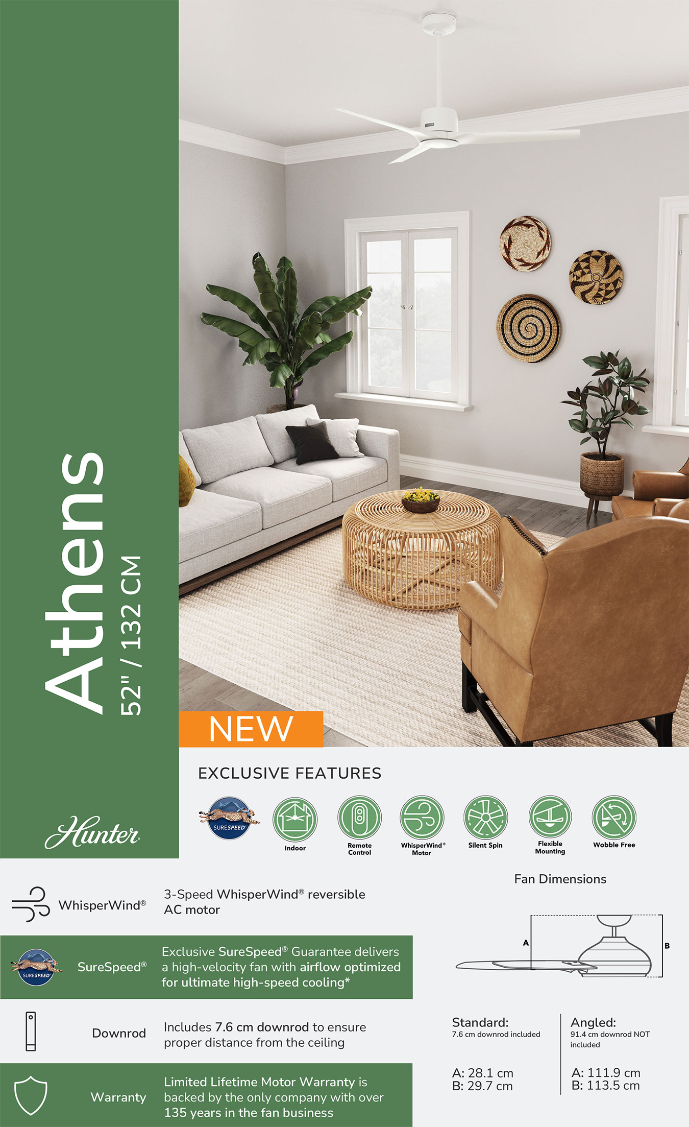 Η εταιρεία Hunter ιδρύθηκε το 1886 στις Συρακούσες της Νέας Υόρκης. Είναι ο παλαιότερος και μεγαλύτερος κατασκευαστής ανεμιστήρων οροφής στον κόσμο. Η εταιρεία με βάση το Μέμφις της Αμερικής, παράγει περισσότερα από 300 εμπορικά και βιομηχανικά μοντέλα ανεμιστήρων οροφής. Αναγνωρισμένη παγκοσμίως για την απαράμιλλη δέσμευσή της στην ποιότητα και με μια διαδικασία ποιοτικού ελέγχου, 500 βημάτων !!!, έχει κερδίσει τη φήμη για την παραγωγή ισχυρών, αλλά αθόρυβων, και αταλάντευτων ανεμιστήρων οροφής, προσφέροντας άριστη εξυπηρέτηση και το πιο εκτεταμένο πρόγραμμα εγγύησης στον κλάδο.