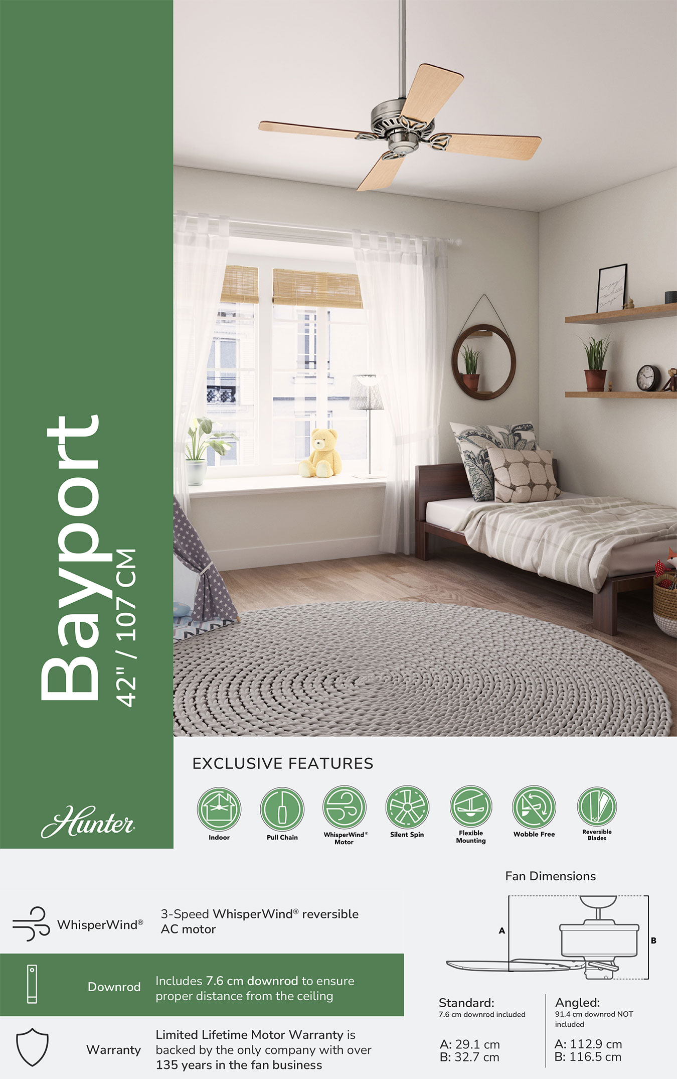 Ανεμιστήρας οροφής HUNTER BAYPORT BRUSHED NICKEL 42 (107cm) 24179
