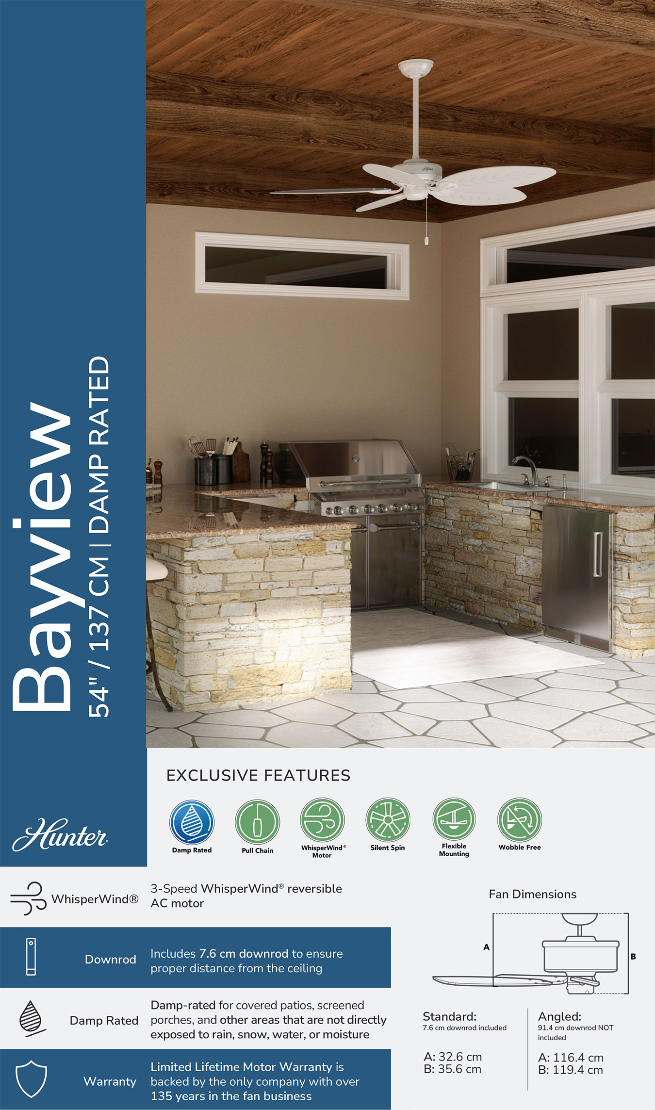 Ανεμιστήρας οροφής HUNTER Bayview - White - White 137cm 24996