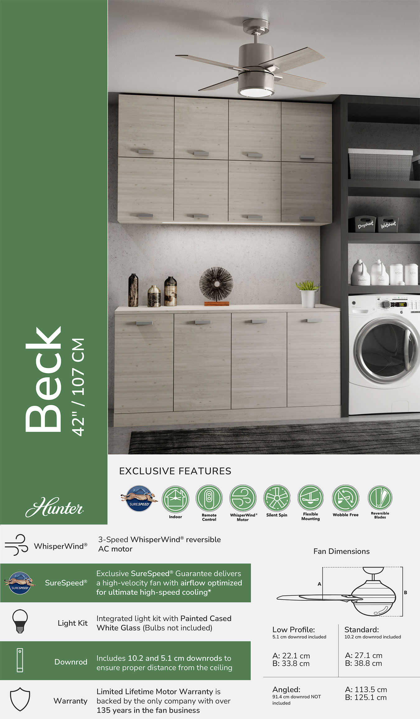 Ανεμιστήρας οροφής HUNTER Beck - Brushed Nickel - Light Greyed Oak-Warm Grey Oak 107cm 50655