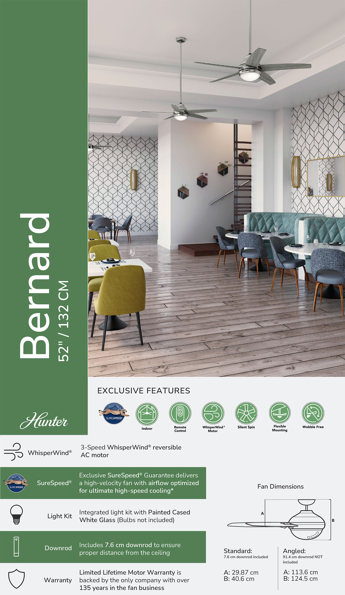 Ανεμιστήρας οροφής HUNTER Bernard - Brushed Nickel - Dark Grey Oak 132cm 51776