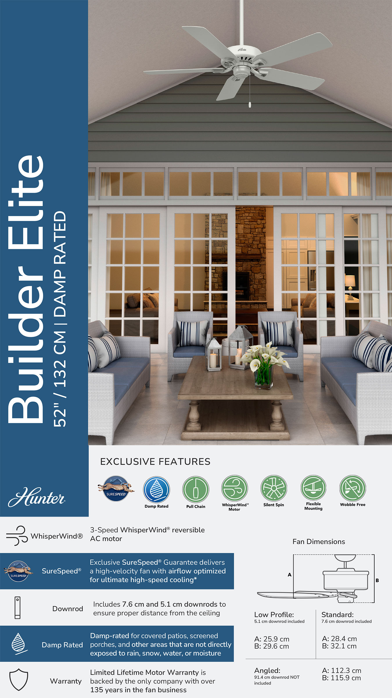 Ανεμιστήρας οροφής HUNTER Builder Elite - Premier Bronze - Premier Bronze 132cm 51492