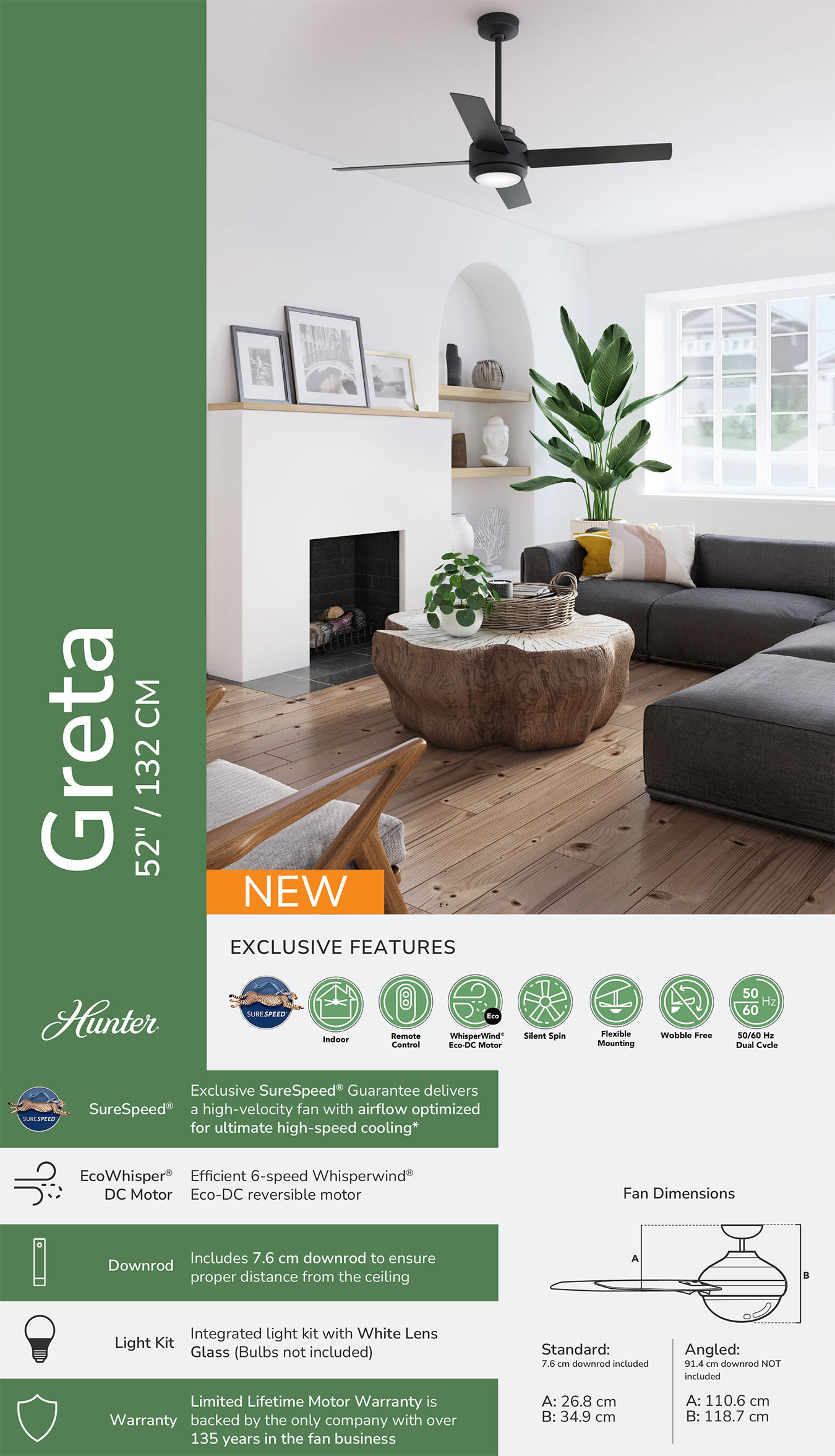 Ανεμιστήρας οροφής HUNTER Greta DC - Matte Black - Black 132cm 52640