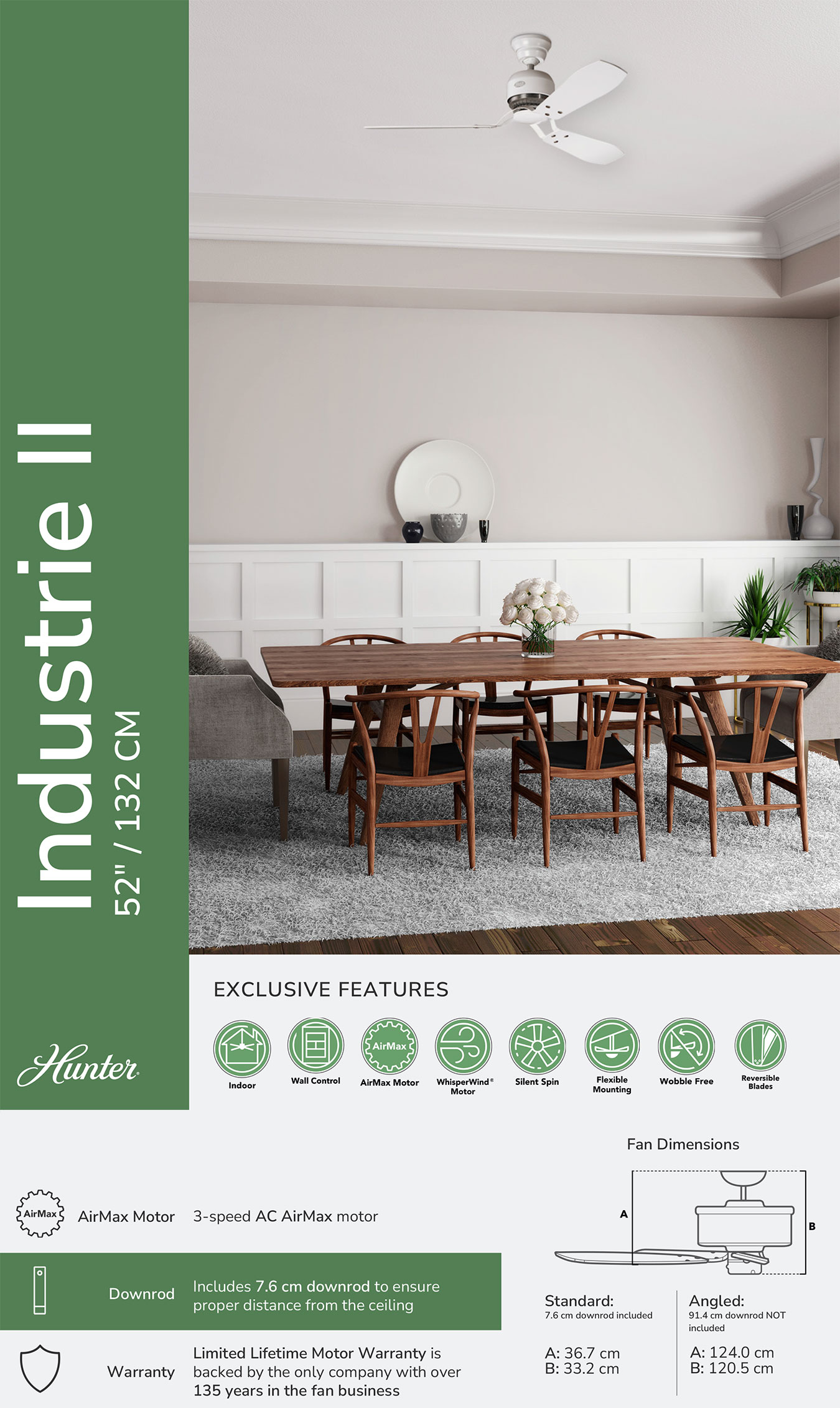 Ανεμιστήρας οροφής HUNTER INDUSTRIE II CHALK WHITE 52 (132cm) 24547