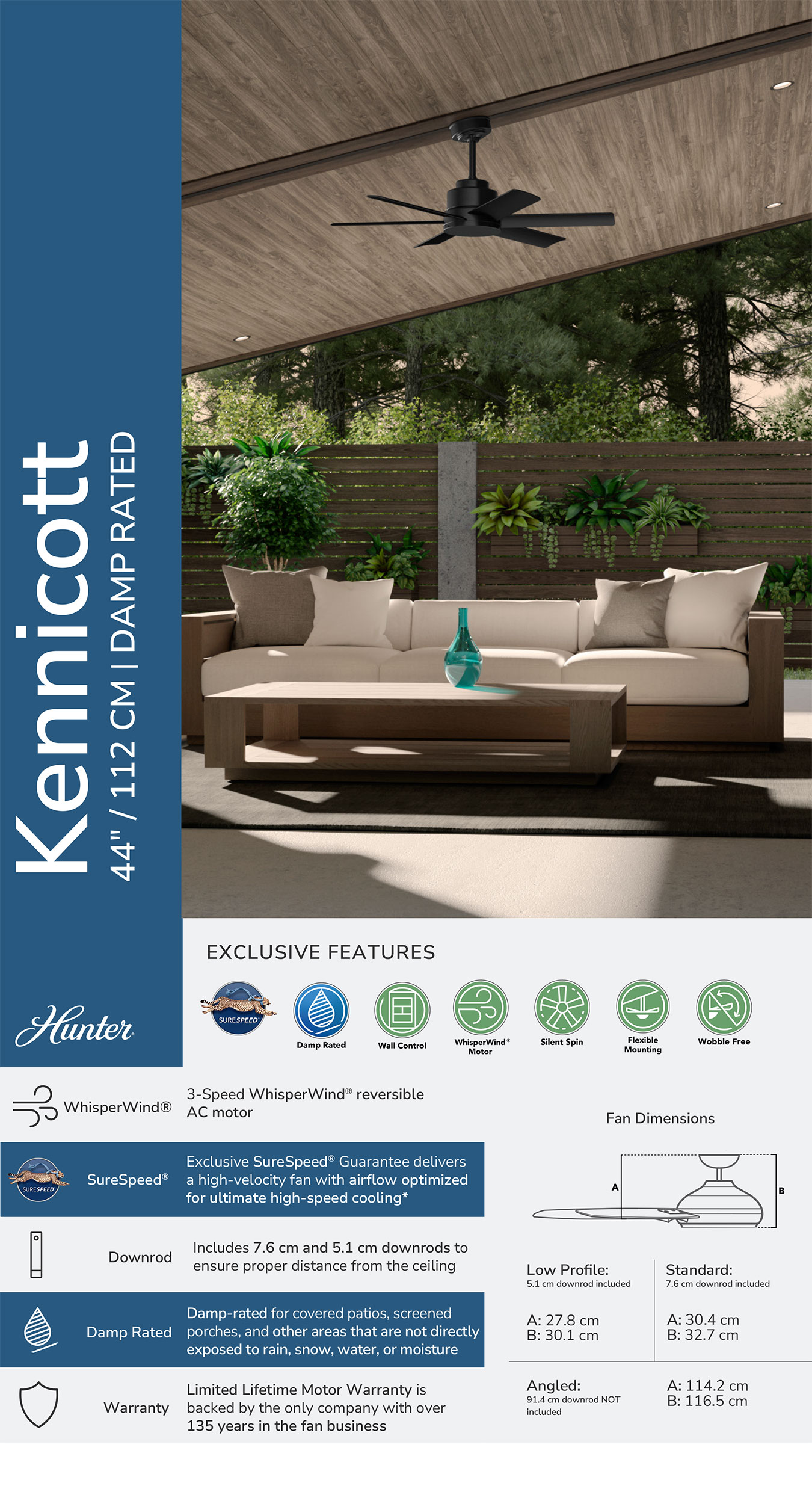Ανεμιστήρας οροφής HUNTER Kennicott - Matte Black - Black 112cm 50937