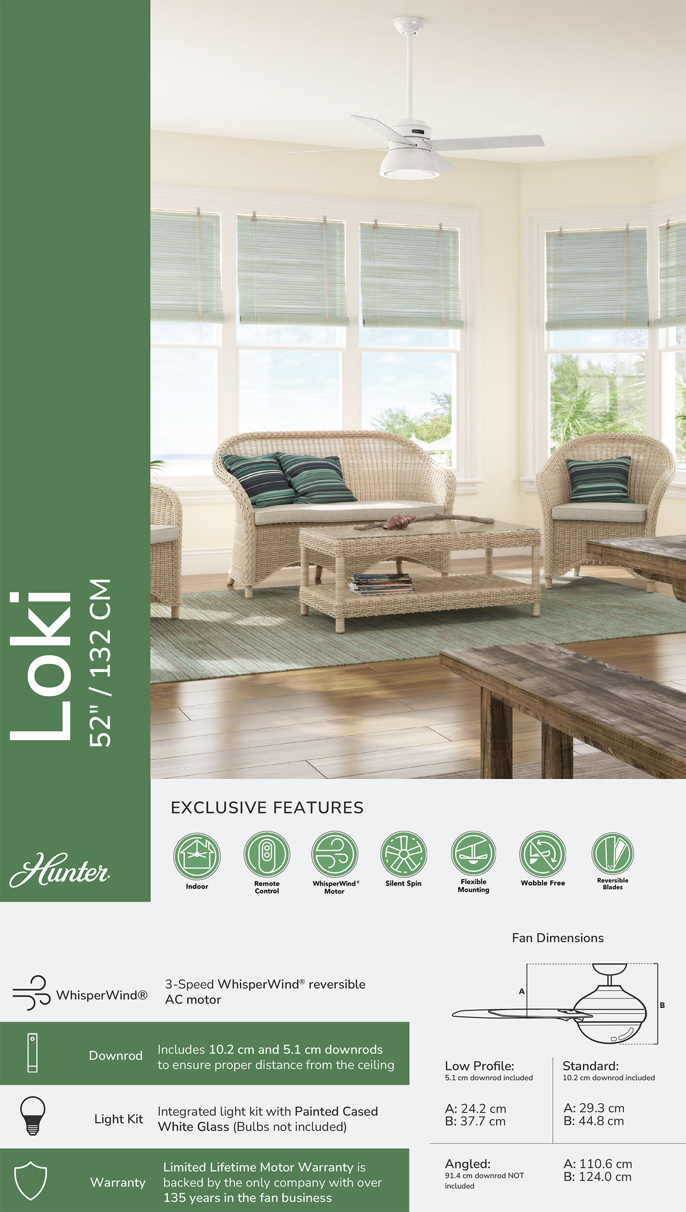 Ανεμιστήρας οροφής HUNTER Loki - Matte Black - Light Grey Oak-Flat Matte Black 132cm 50425