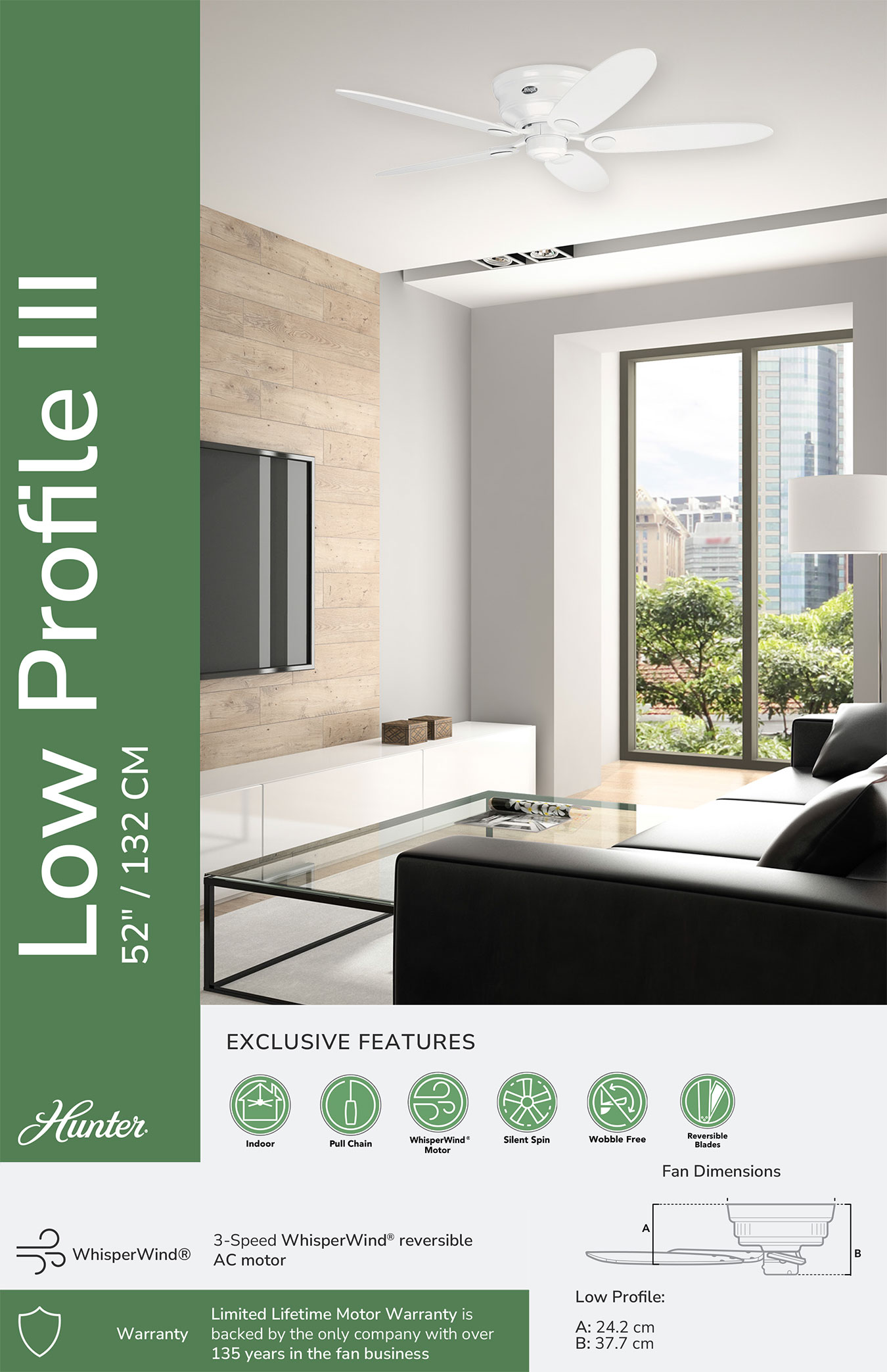 Ανεμιστήρας οροφής HUNTER LOW PROFILE BN 52 (132cm) 24372