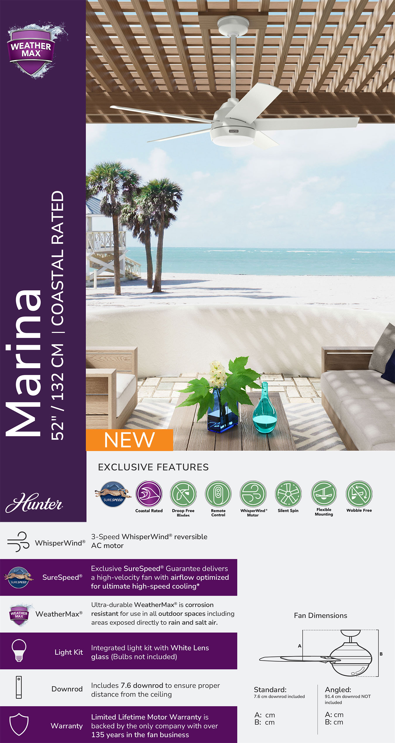 Ανεμιστήρας οροφής HUNTER Marina - Fresh White - White 132cm 52921