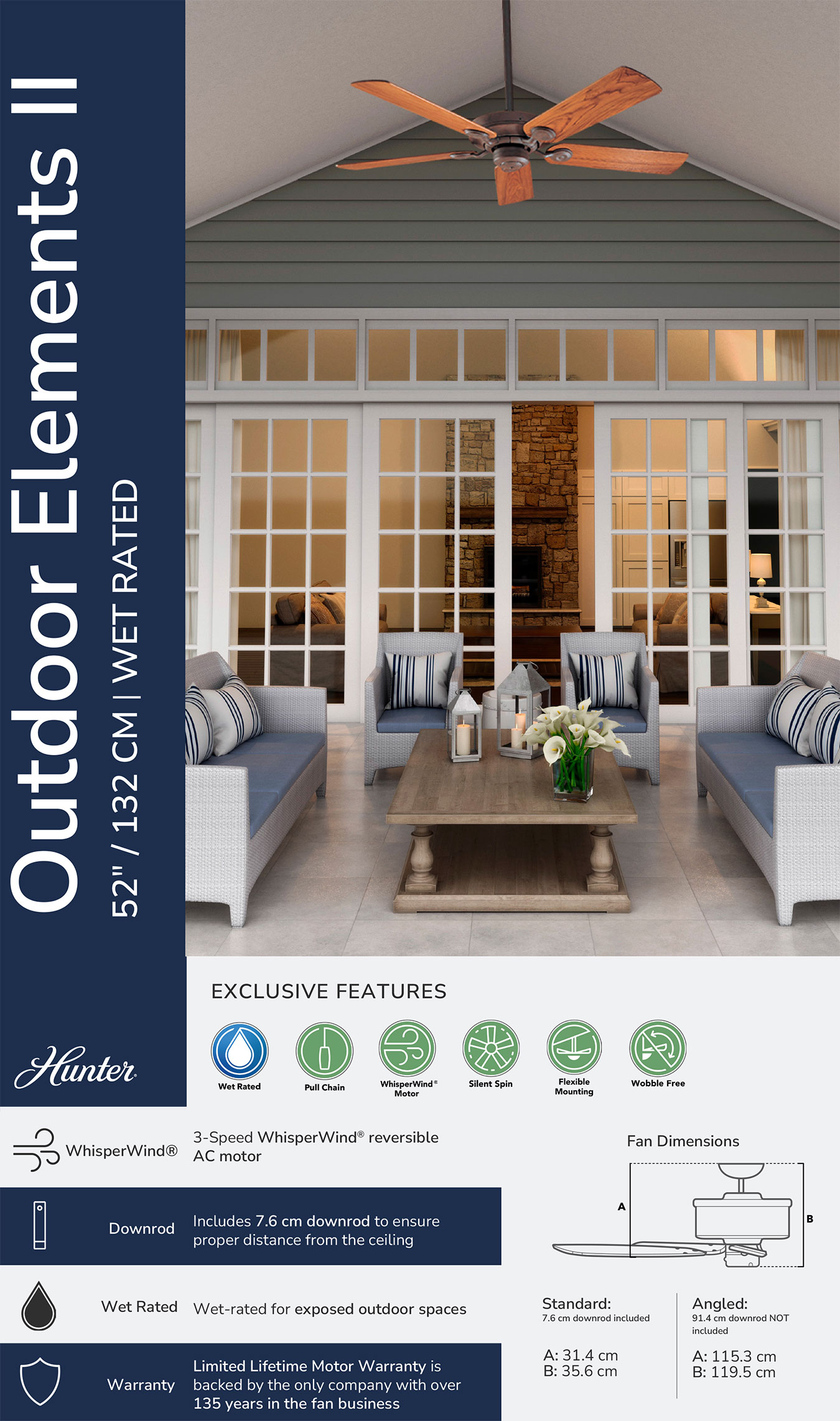 Ανεμιστήρας οροφής HUNTER OUTDOOR ELEMENTS Weathered Brick 52 inches (132cm) 24324