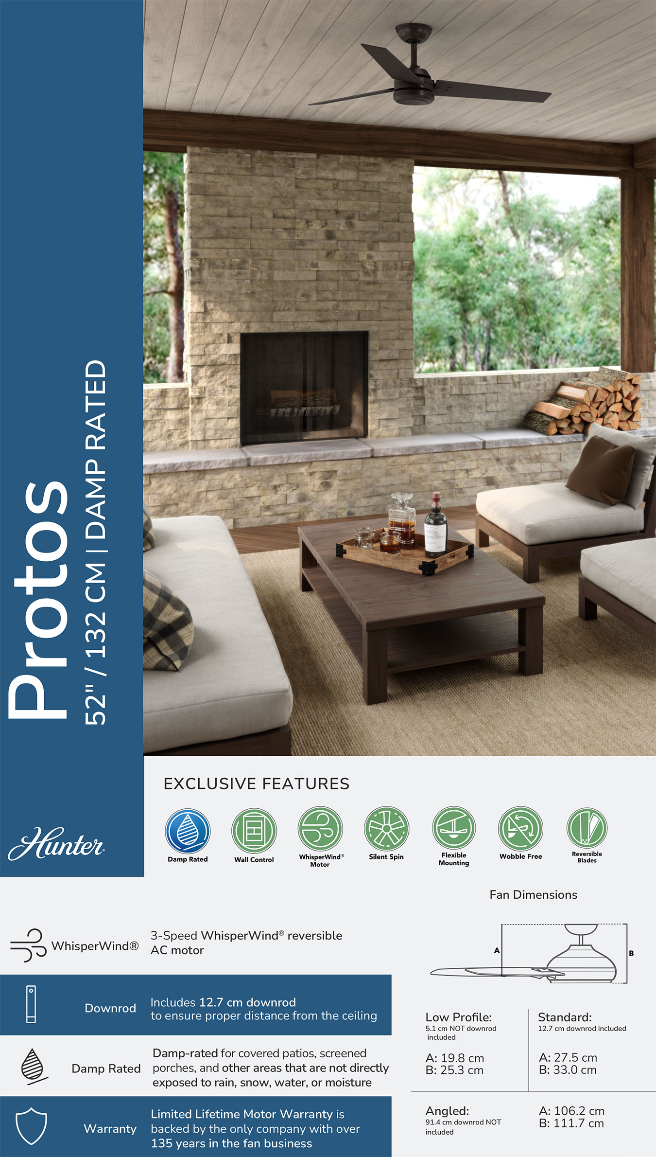 Ανεμιστήρας οροφής HUNTER Protos - Premier Bronze - Fire Polished Wood-Premier Bronze 132cm 51220