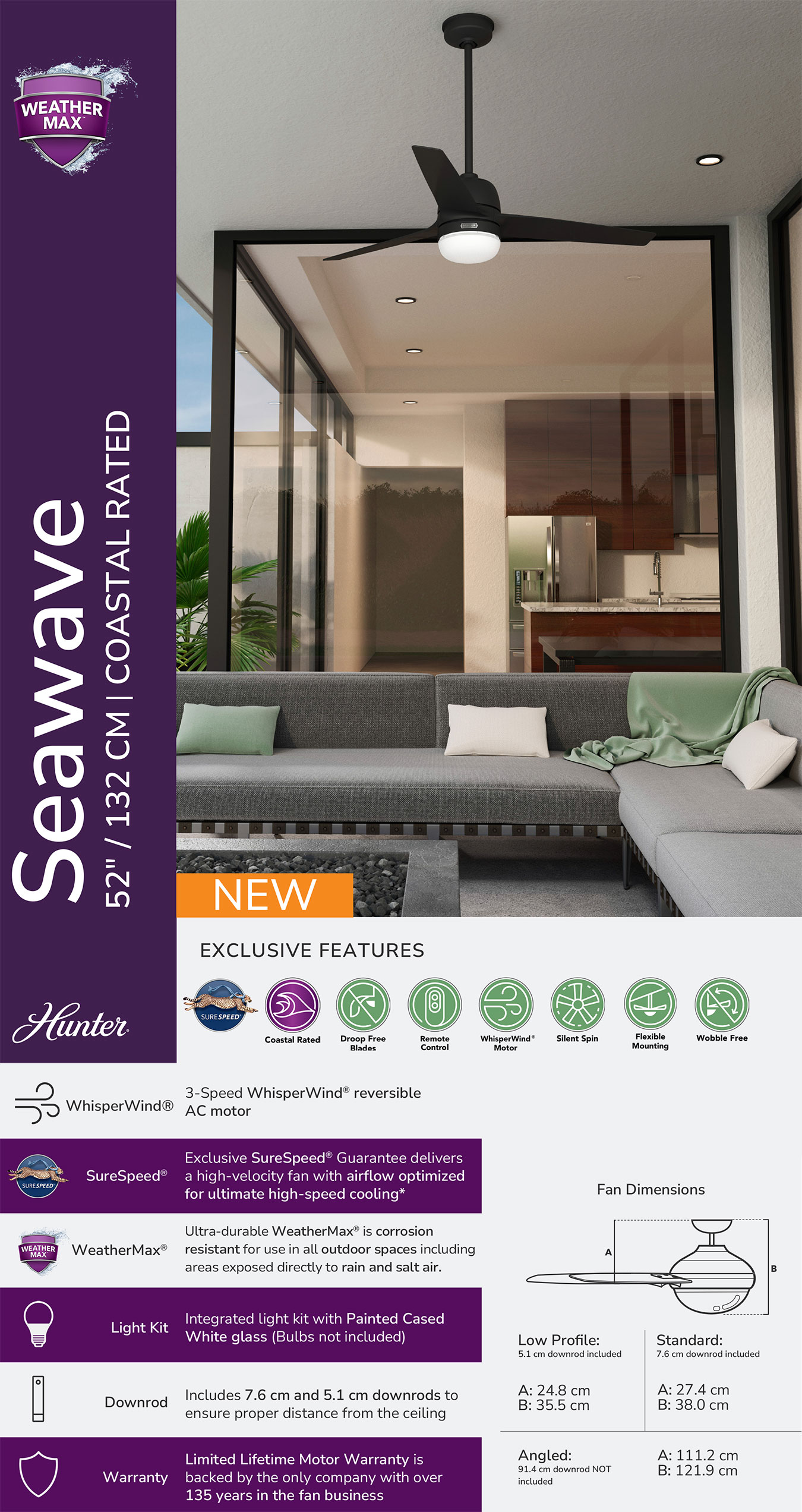 Ανεμιστήρας οροφής HUNTER Seawave - Matte Black - Black 132cm 51780