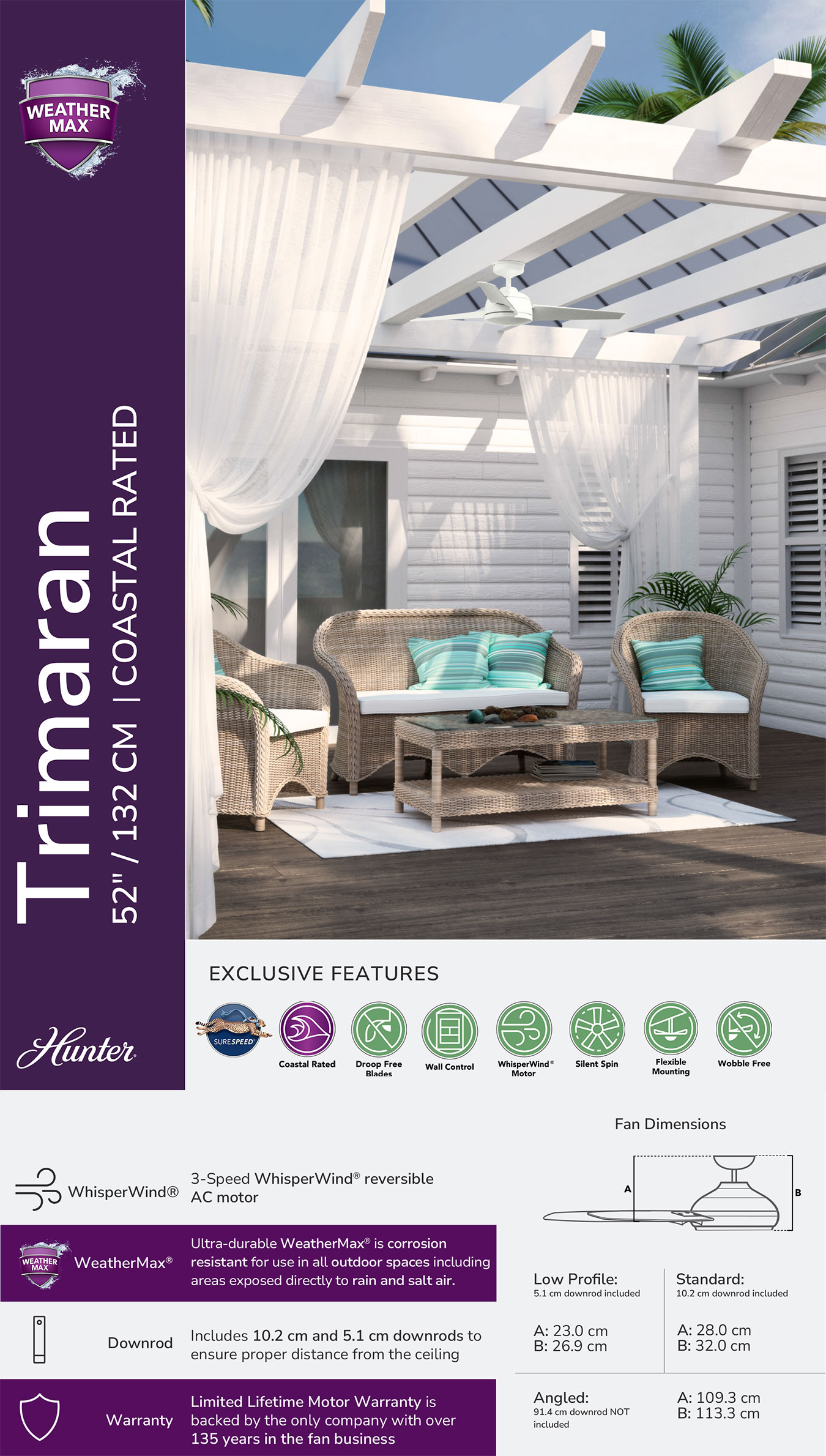 Ανεμιστήρας οροφής HUNTER Trimaran - Fresh White - White 132cm 50942
