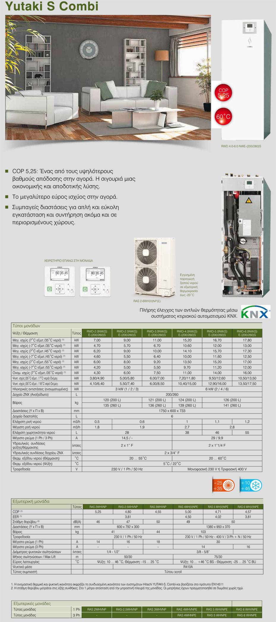 Αντλία Θερμότητας HITACHI Yutaki S COMBI RWD-2.0RW1E-220S.RAS-2WHVRP1 R410A 1Φ