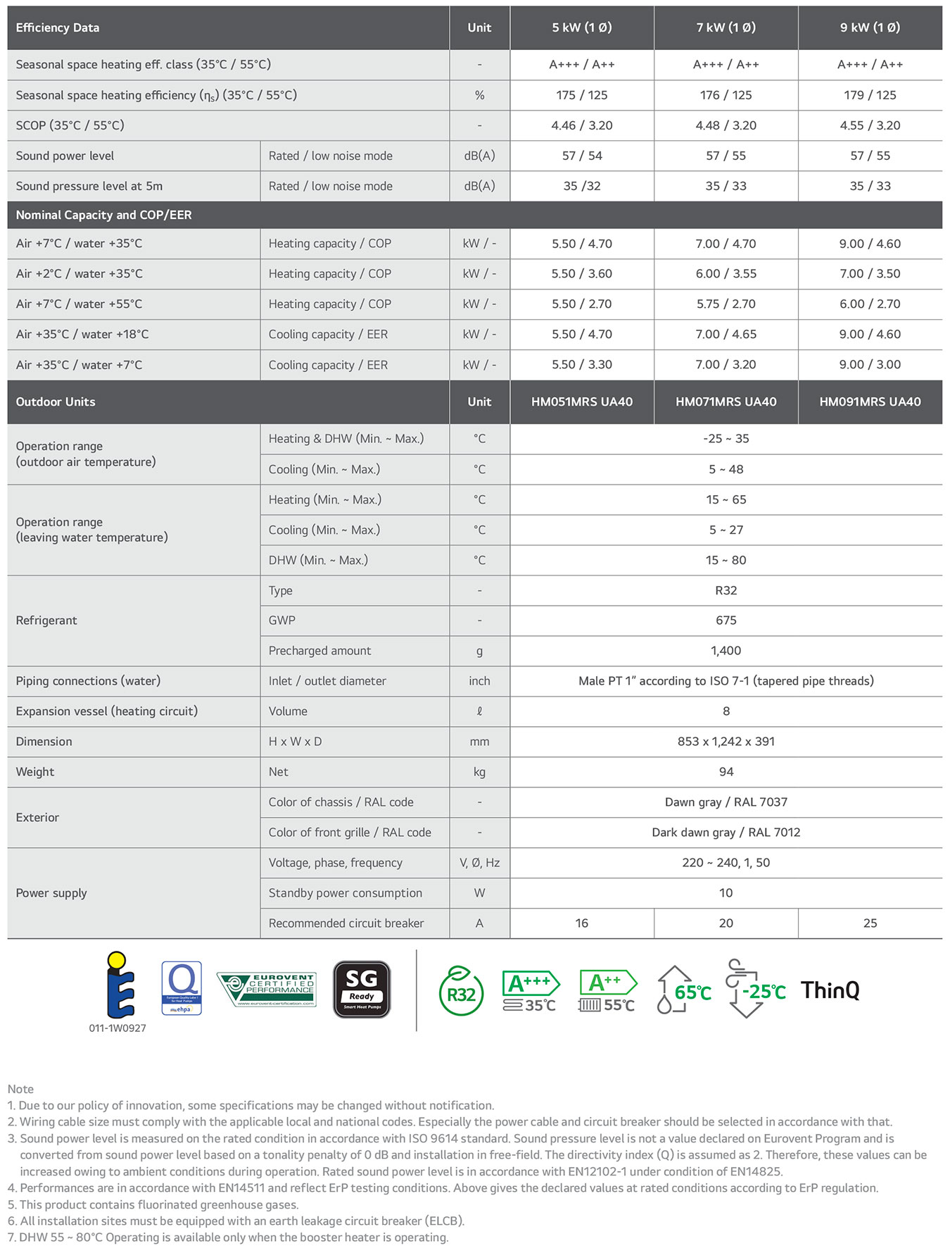 Αντλία Θερμότητας LG Therma V R32 Monobloc S II 5KW 1Φ - HM051MRS UA40