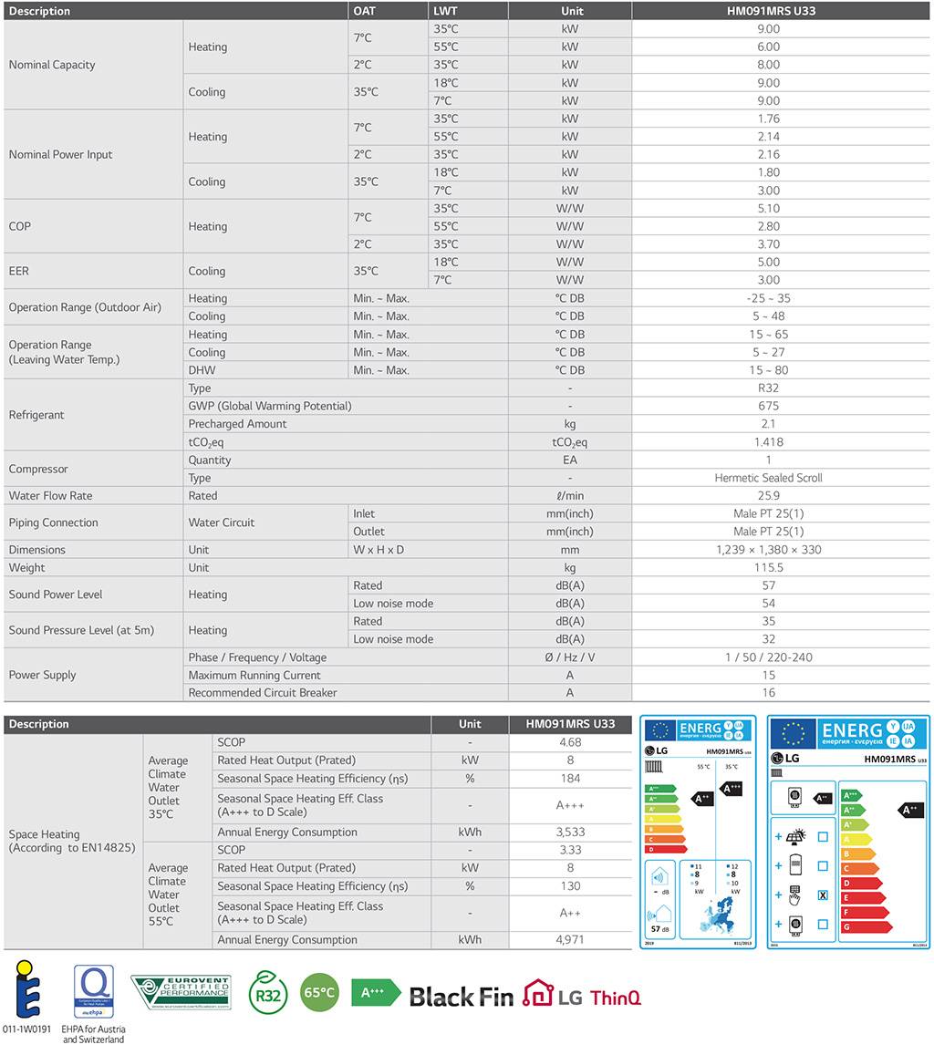 Αντλία Θερμότητας LG Therma V Silent R32 Monobloc 9KW 1Φ - HM091MRS.U33