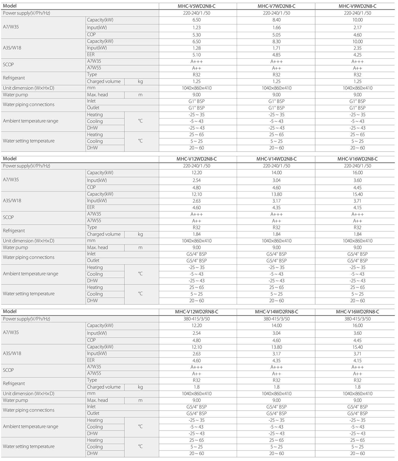 - Μεγάλο εύρος χωρητικότητας που κυμαίνεται από 6.5 ~ 16kW