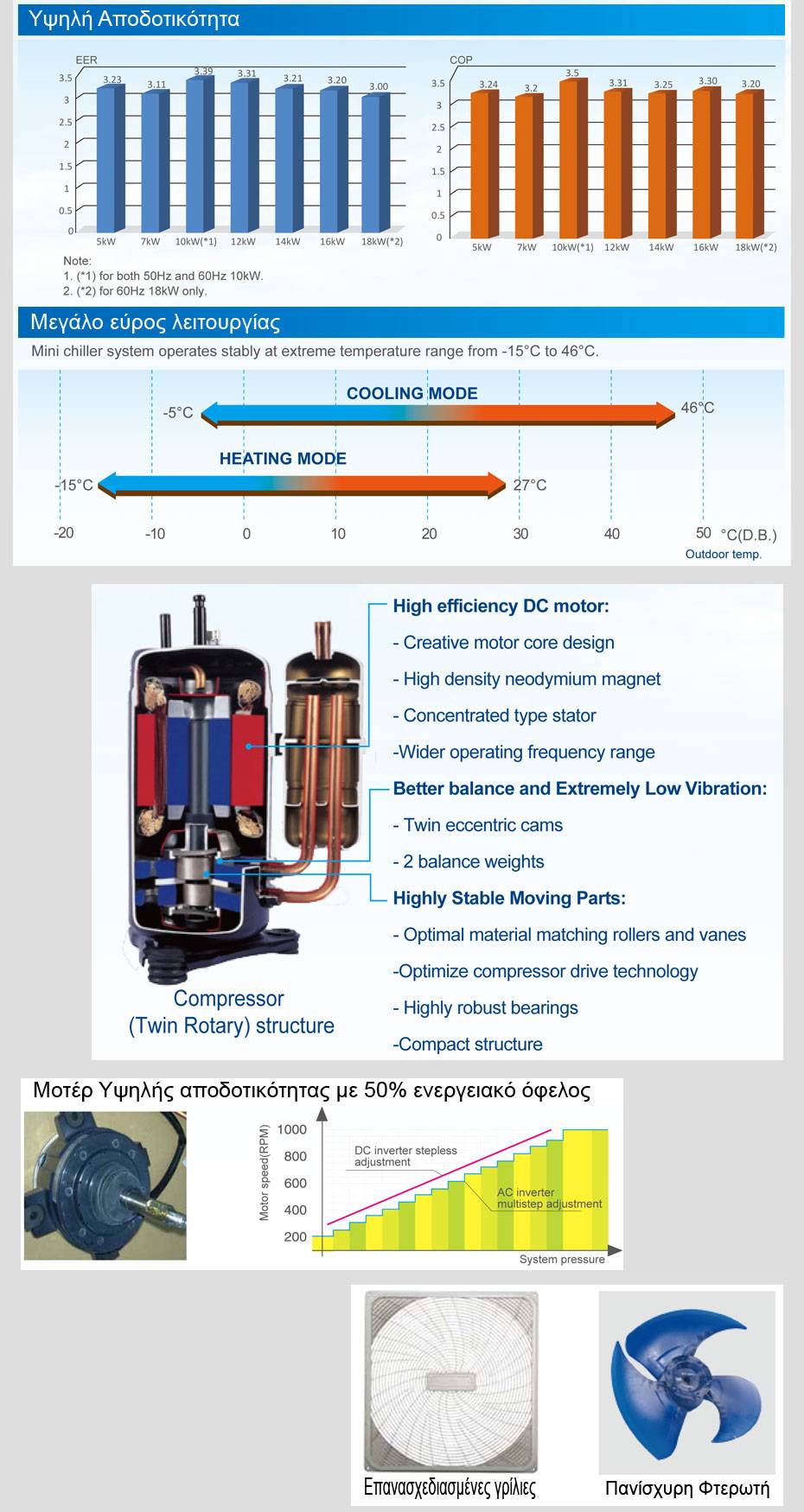 Στην καρδιά του συστήματος είναι ένας ιδιαίτερα εξελιγμένος συμπιεστής inverter. Η προηγμένη τεχνολογία που χρησιμοποιεί επιτρέπει στην εξωτερική μονάδα να διαχειρίζεται τις απαιτήσεις της ζώνης που ελέγχει με ακριβή ρύθμιση της θερμοκρασίας και άκρως αποδοτική χρήση της ενέργειας.