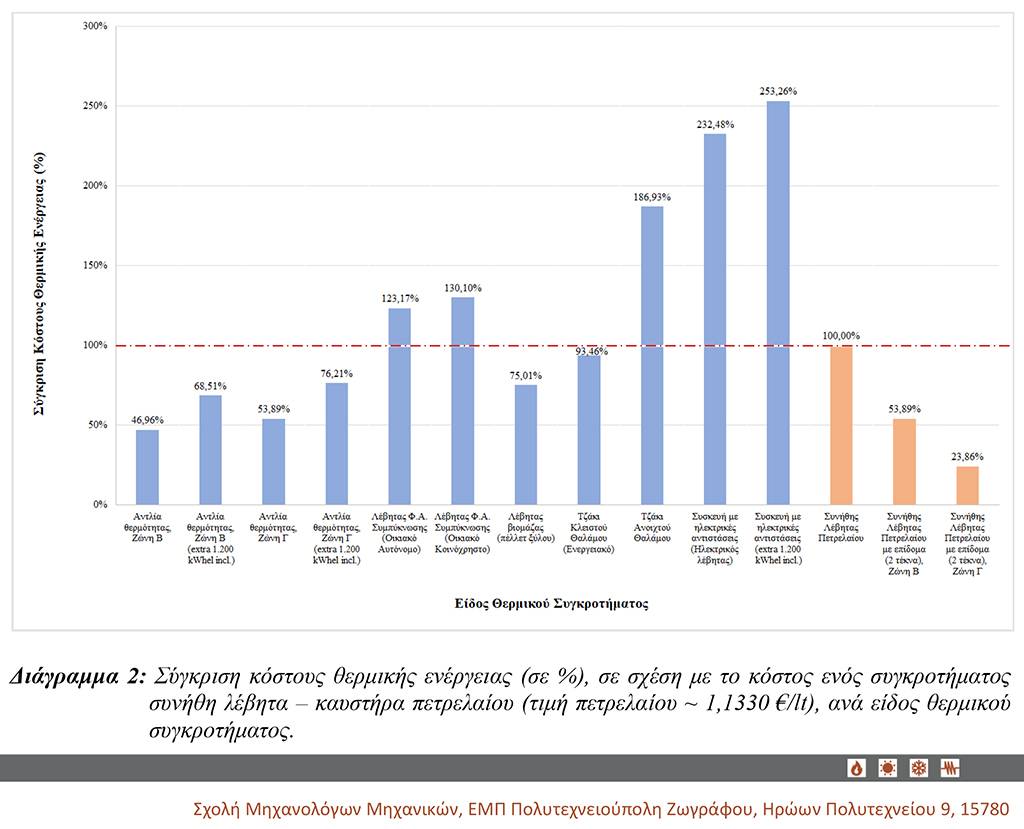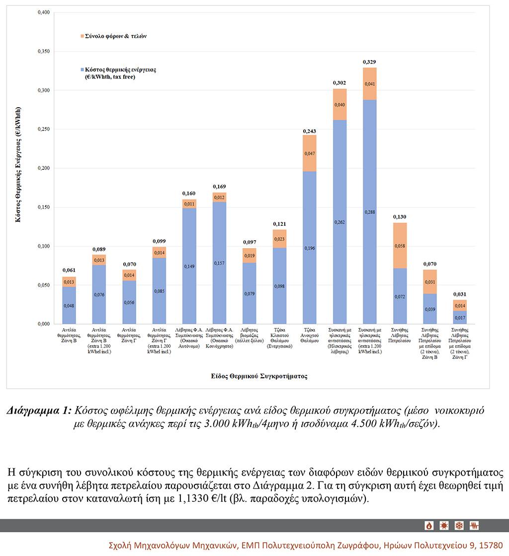 Το Εργαστήριο Ατμοκινητήρων και Λεβητών του ΕΜΠ, σε συνεργασία με το Ινστιτούτο Χημικών Διεργασιών και Ενεργειακών Πόρων του ΕΚΕΤΑ, πραγματοποίησε πρόσφατα μια σειρά από τεχνοοικονομικούς υπολογισμούς για ορισμένες από τις διαθέσιμες τεχνολογίες θέρμανσης στην Ελληνική αγορά.