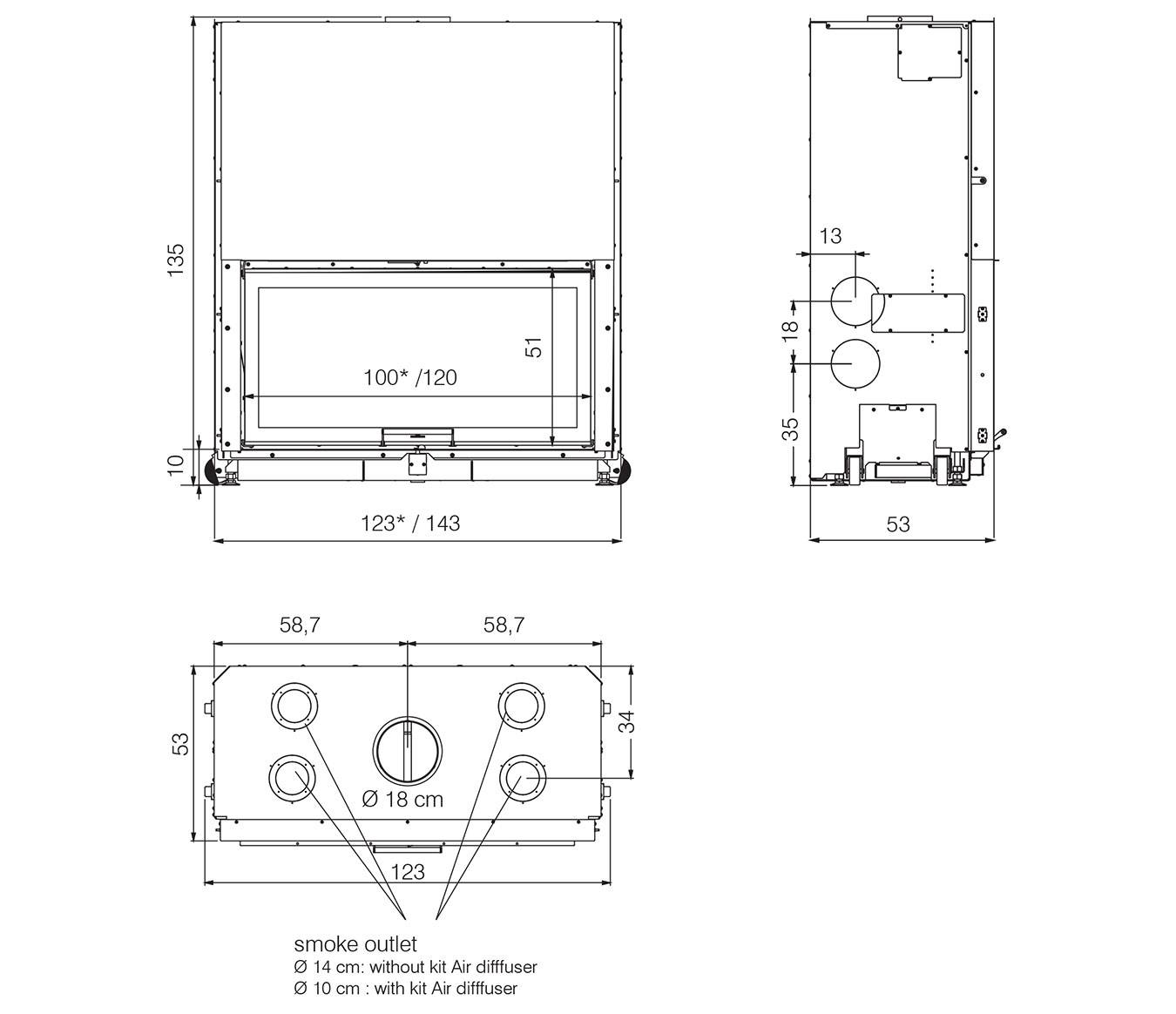 - ζεστός αέρας μέσω αεραγώγών σε 4 παρακείμενους χώρους (με το προαιρετικό κιτ)