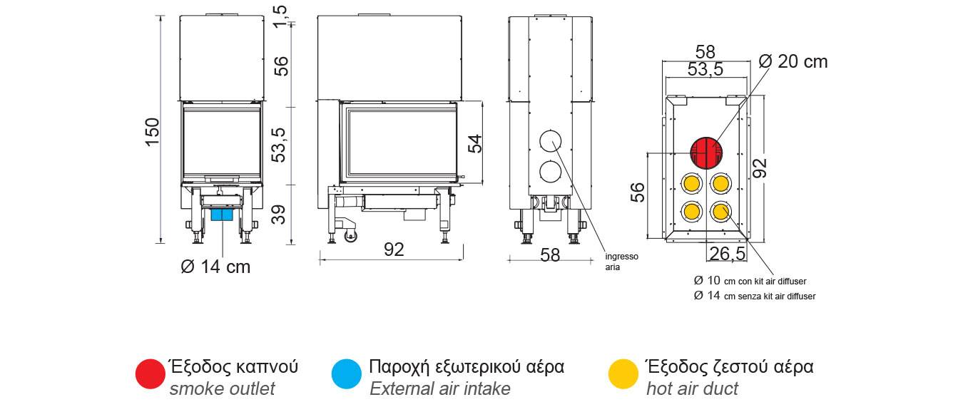 • AIR DIFFUSER: διοχέτευση ζεστού αέρα μέσω καναλιού