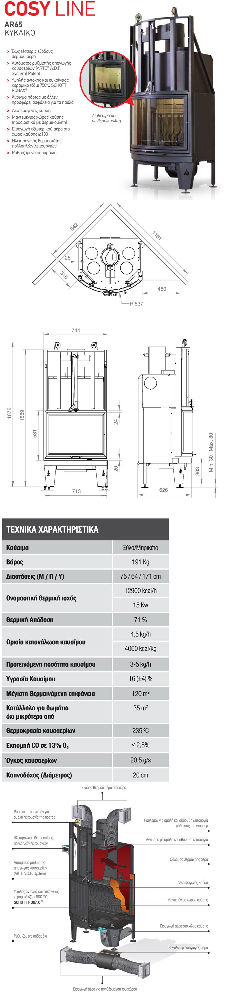 Ενεργειακή εστία ξύλου Arte Cozy AR65 (Κυκλικό)