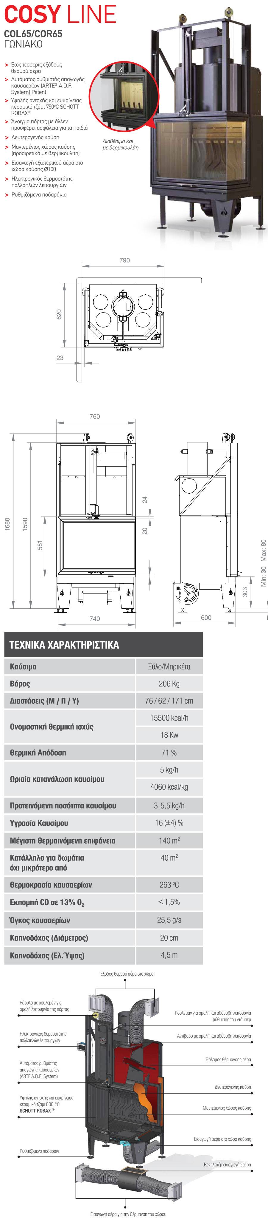 Ενεργειακή εστία ξύλου Arte Cozy COL65 (δύο όψεων) Αριστερό