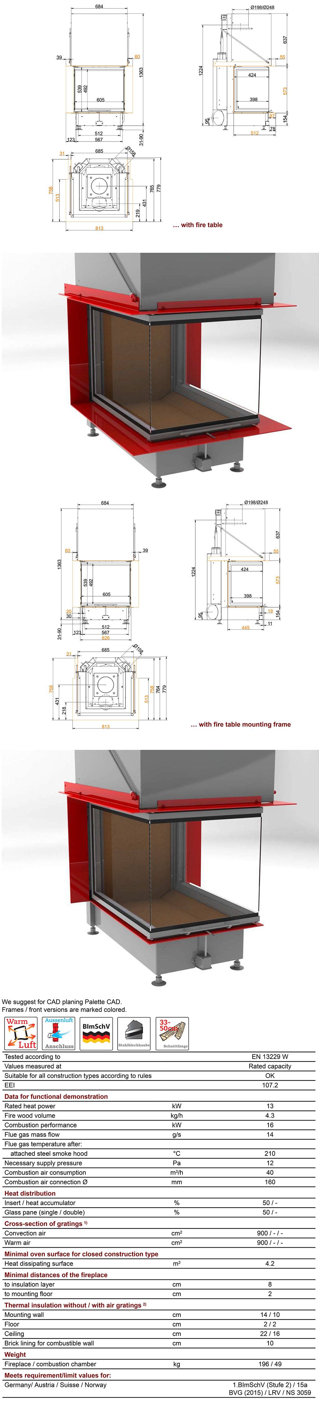 Ενεργειακό Τζάκι Brunner Panorama 57/40/60/40 - Τριών Όψεων