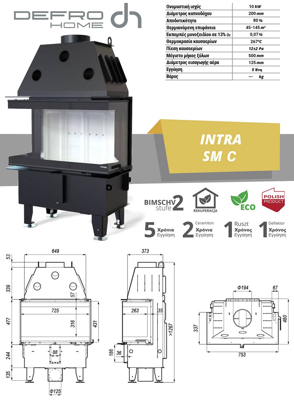 Ενεργειακό Τζάκι Defro Home Intra SM C