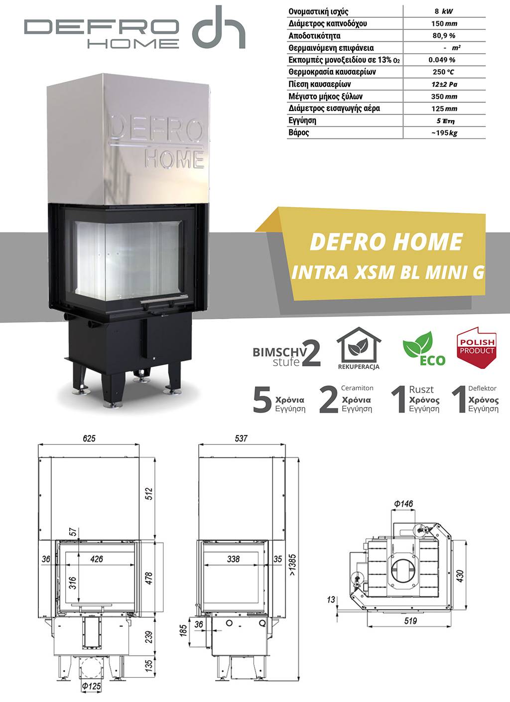 Ενεργειακό Τζάκι Defro Home Intra XSM BL Mini G