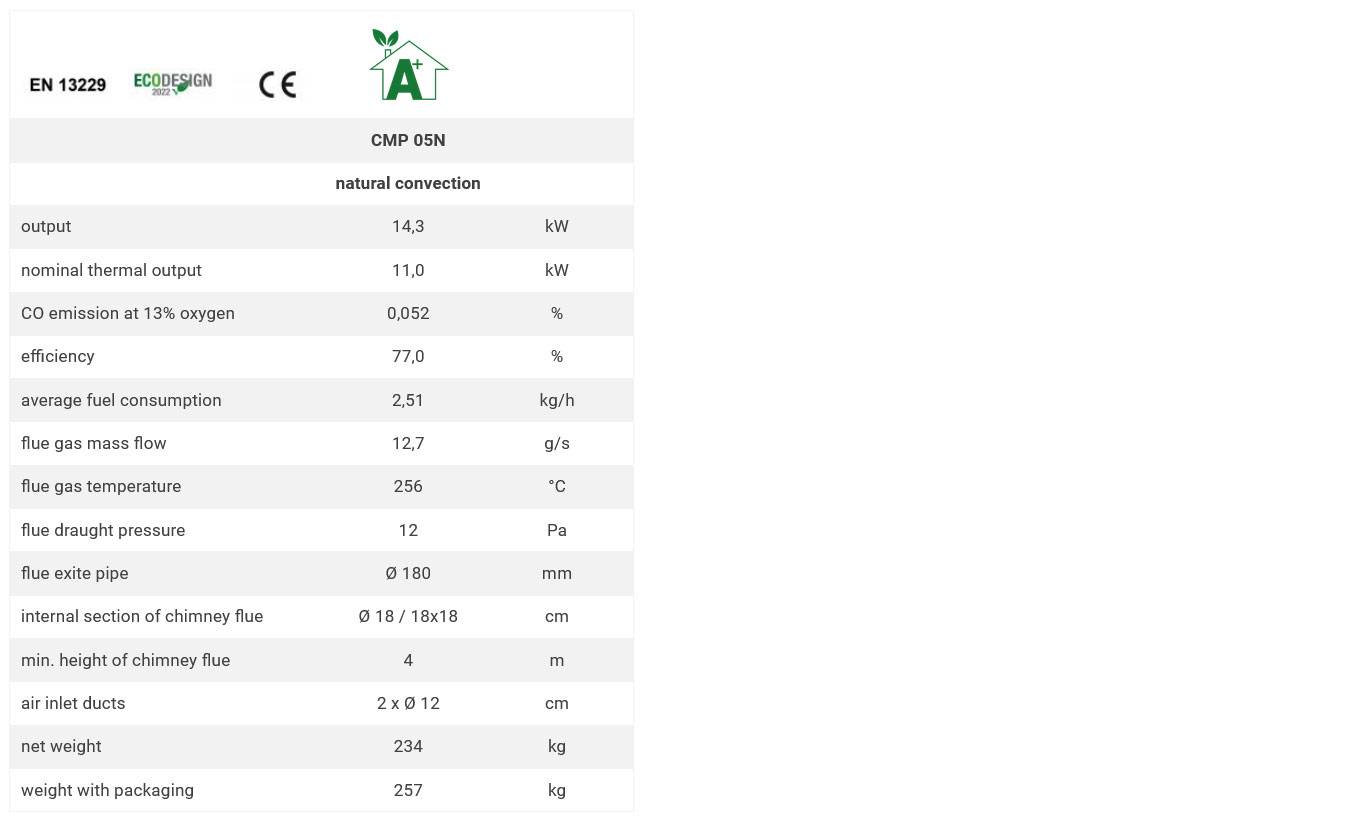 Ενεργειακή απόδοση : 85.4 % – Εκπομπή CO : 0.052 %