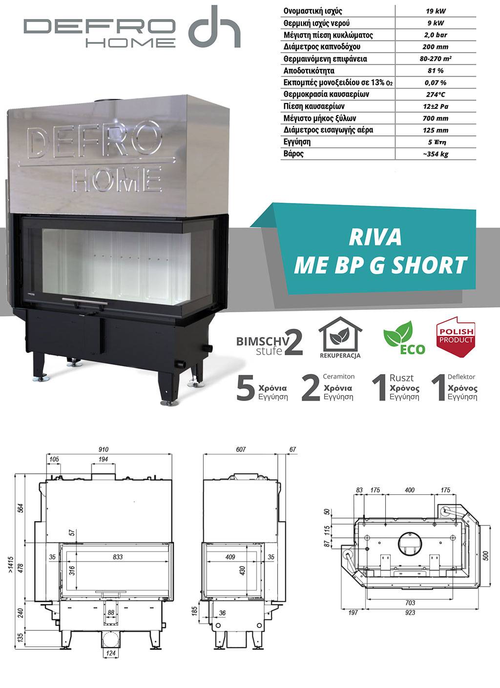 Ενεργειακό Τζάκι καλοριφέρ Defro Home Riva ME BP G Short