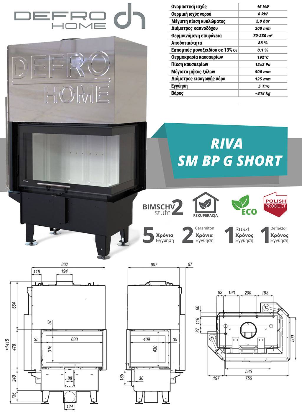 Ενεργειακό Τζάκι καλοριφέρ Defro Home Riva SM BP G Short