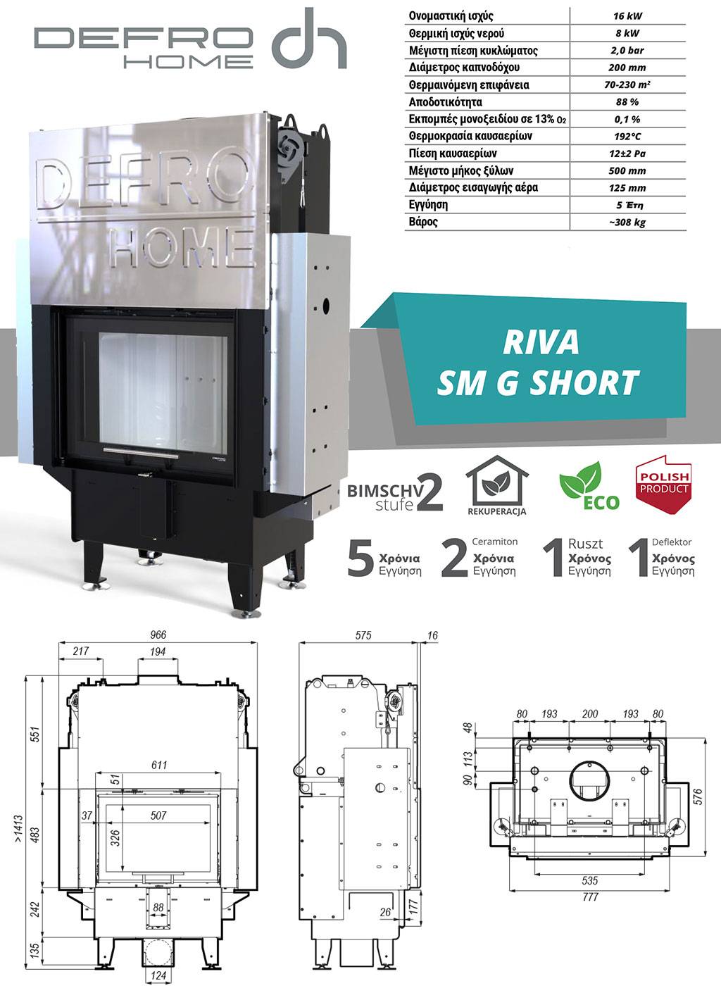 Ενεργειακό Τζάκι καλοριφέρ Defro Home Riva SM G Short