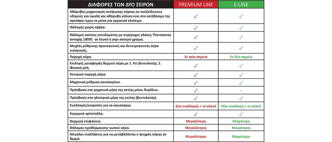 - Πρωτογενή και δευτερογενή καύση και στις δύο σειρές Premium και e–LINE.