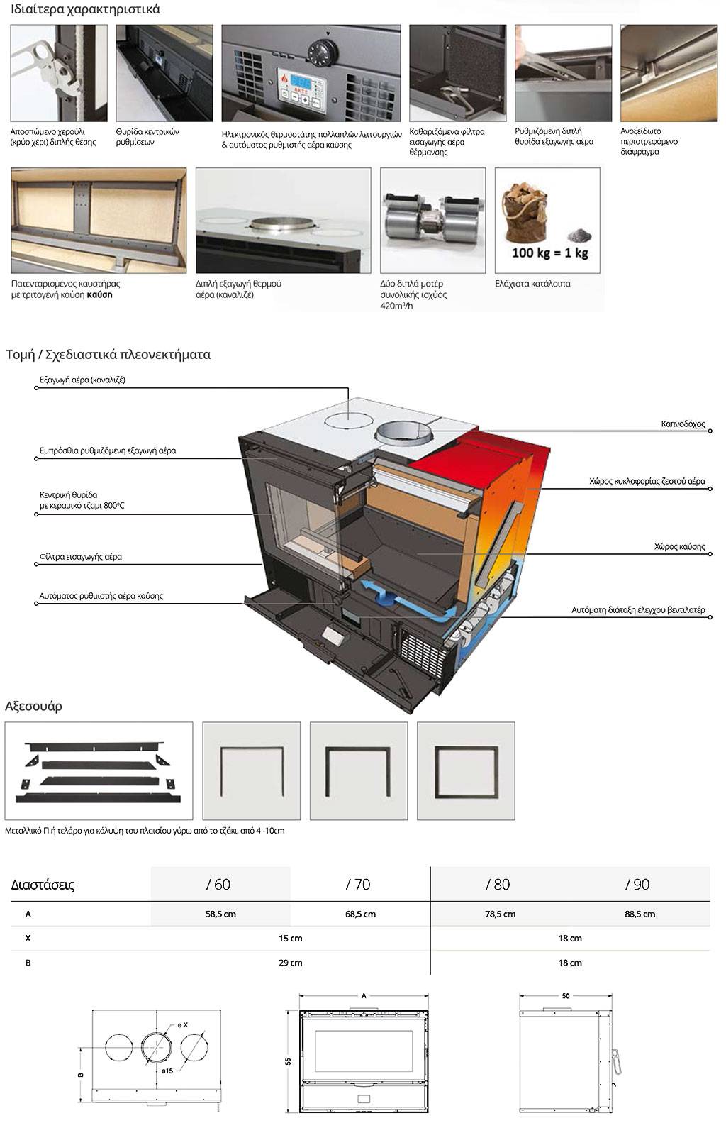 - Διαστάσεις χώρου καύσης (ΠxΒxΥ): 52/27/37 cm