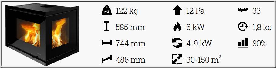 Ένθετη εστία τζακιού LOTUS UNICO 11 (Δύο Όψεων - Δεξιό)