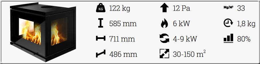 Ένθετη εστία τζακιού LOTUS UNICO 13 (Τριών Όψεων)