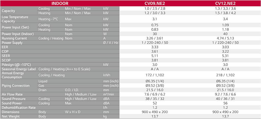 Εσωτερική Μονάδα Δαπέδου - Οροφής για Multi LG CV09.NE2 9000 Btu