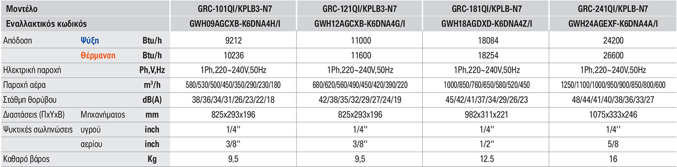 Εσωτερική μονάδα τοίχου Gree Pular Graphite Free Match Multi 9000btu GRC-101QI/KPLB3-N7